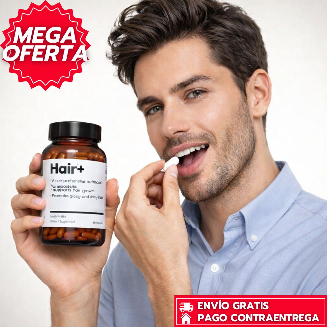 Imagina mirarte al espejo y notar tu cabello más abundante, con más cuerpo y vitalidad. Hair + actúa desde el interior, ayudando a combatir la caída causada por estrés, deficiencias nutricionales y envejecimiento, tanto en hombres como en mujeres.